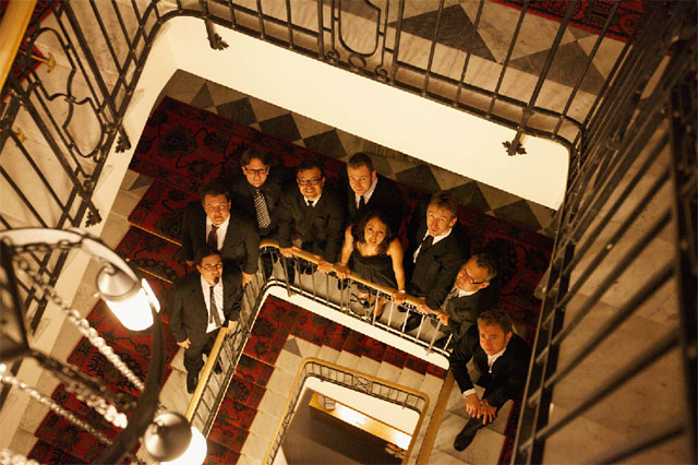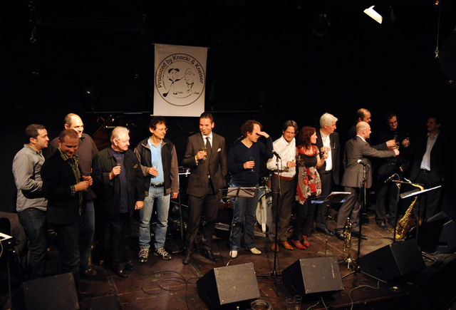 2012CD Release Party "Fourty" im Treibhaus Luzern. Foto v.l.n.r.: Ricardo Regidor, Thomas Lüscher, Beni Mosele, Richard Decker, Klaus Ignatzek, René Mosele, Clemens Süssenbach, Andreas Knecht, Michèle Lanz, Kalli Gerhards, Pius Baumgartner, Jürgen Hahn, Philipp Scholl, Patrick Jonsson.