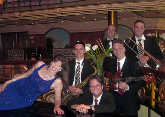 2010Pianist auf dem Mittelmeerkreuzfahrtschiff „Costa Mediterranea“ Rahel Tarelli Band (Foto: v.l.n.r.: Rahel Tarelli, Urs Stucki, Andreas Knecht, Erich Güntensperger, Claudio Berla, Bruno Zemp)